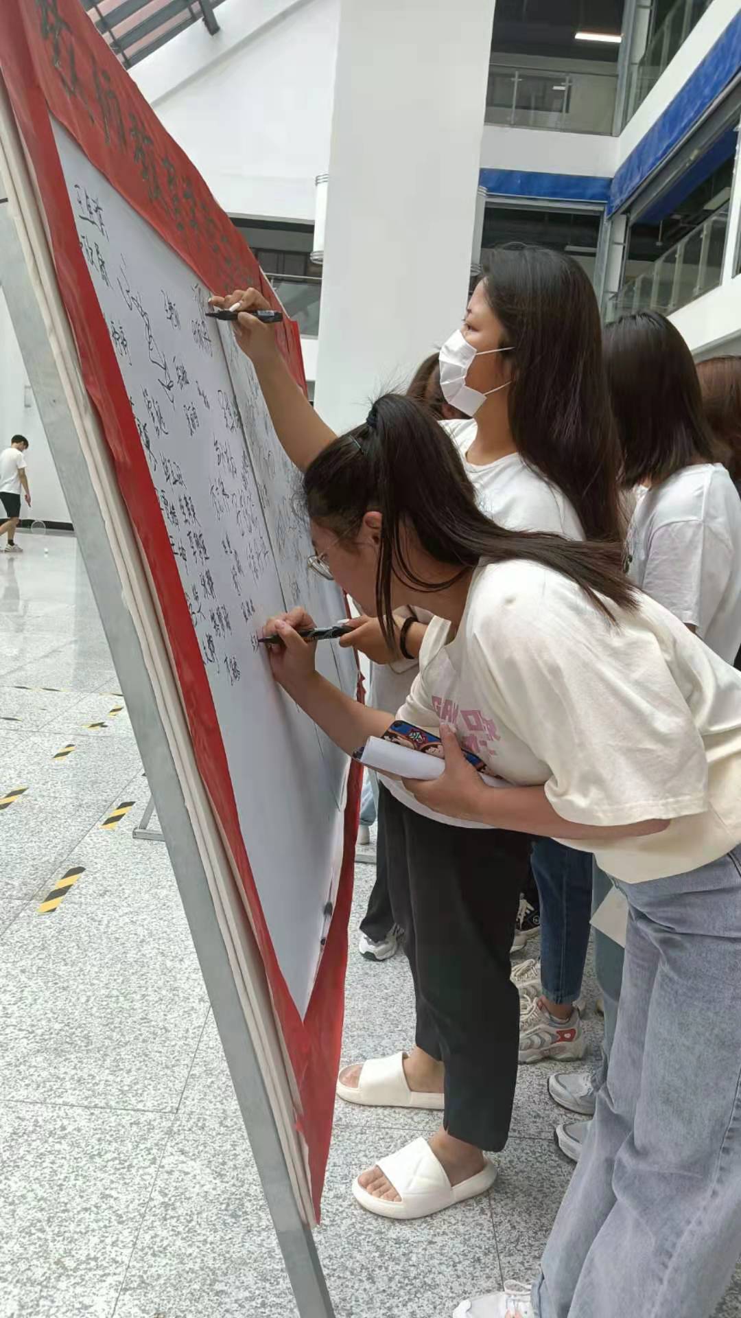 活动过程中,同学们用签名表达对活动的支持和赞许,通过老师的讲话同学们认识到了安全的重要性,临近暑假,同学们要增强自我保护的意识,增强辨别能力。始终把安全放在第一位。