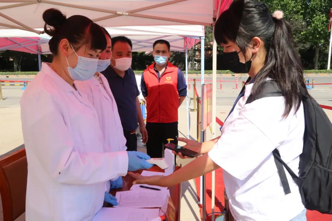 一切已准备就绪校领导和老师们在门口耐心等待牵挂着归来学子的平安与健康