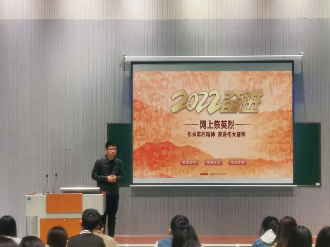 各团支部通过中华英烈网的“网上祭英烈”的英烈纪念馆版块中瞻仰英烈的简要事迹,并为英烈祭扫、献花扫、献花。