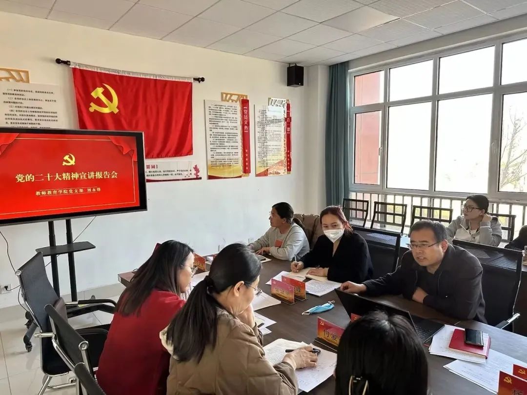 最后,刘校长要求,我院党支部要继续精心组织实施,研究制定具体学习宣传贯彻计划,广泛开展宣传宣讲,努力扩大宣讲的覆盖面和影响力,营造学习宣传贯彻党的二十大精神的浓厚氛围。