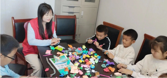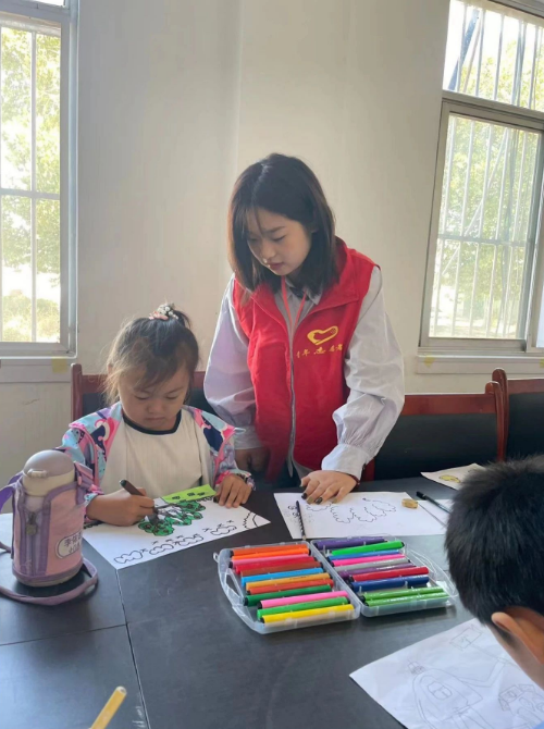 本次活动的4名志愿者来自2022级学前教育1班,他们热情、耐心,积极根据孩子们的兴趣爱好制定了美术、手工、作业辅导三门课程。
