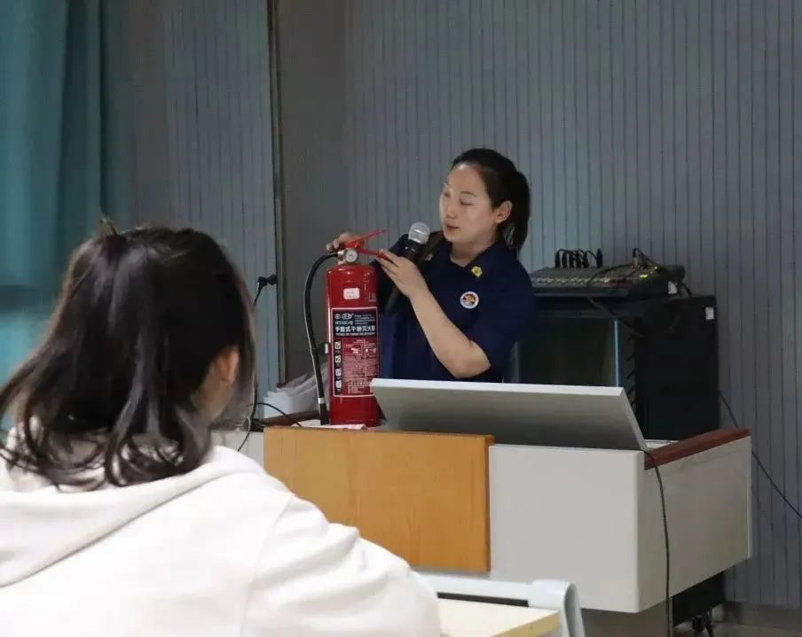 讲座开始后,县消防大队参谋带领同学们观看近几年高校发生的火灾现场以及对于在宿舍中正确用电、安全用电,不私拉电线等注意事项,并且讲解了灭火器的正确使用方式。讲座结束后,在县消防大队的带领下学院组织学生会、自管会干部进行了对灭火器的讲解和使用。