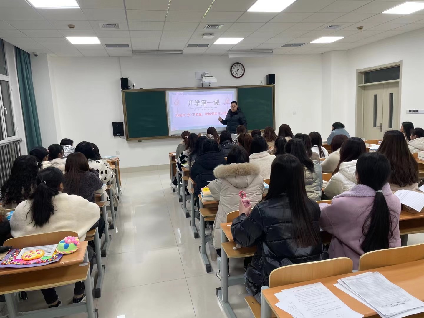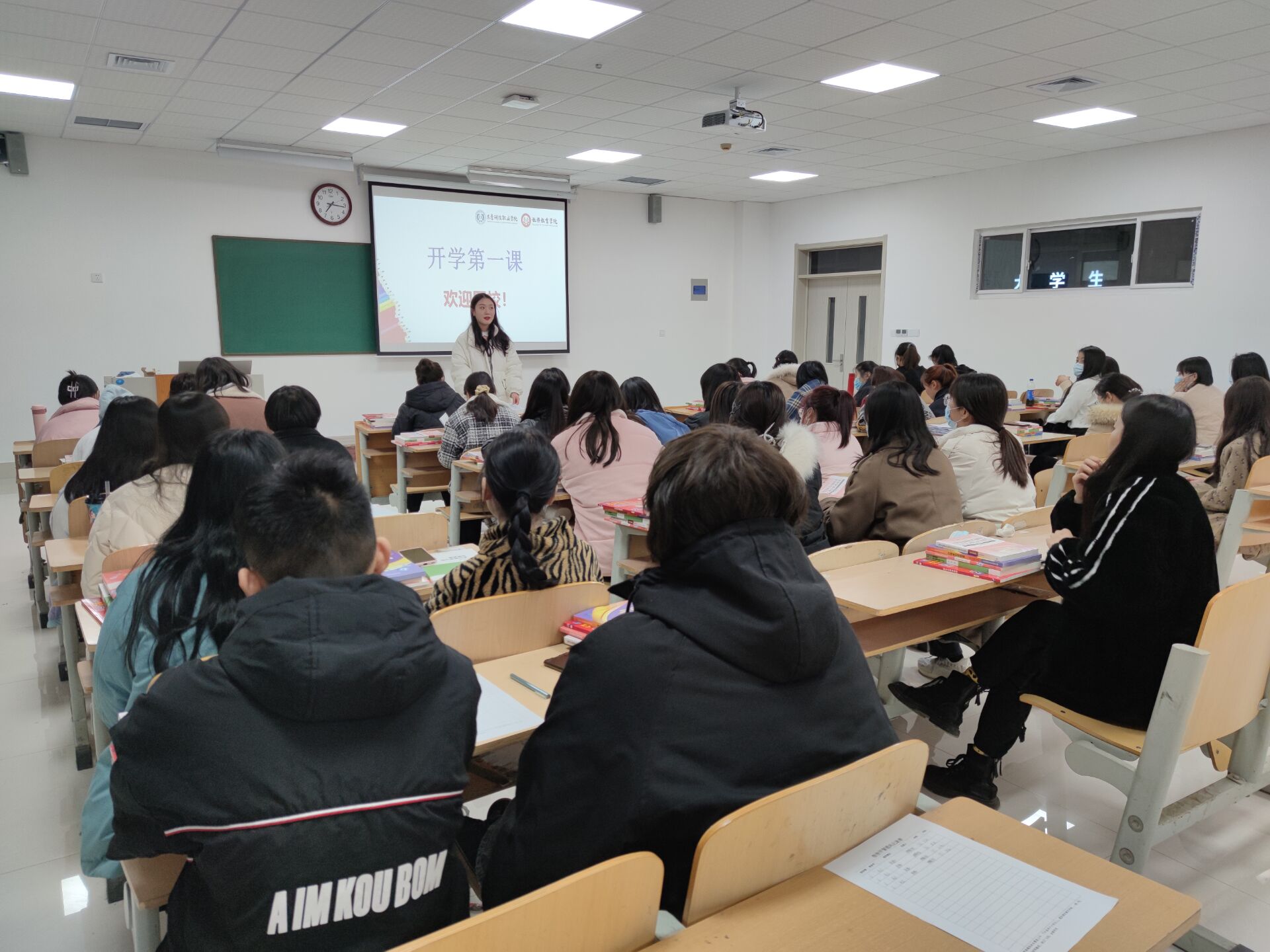 “新学期,特别兴奋,特别有力量!漫长的寒假终于结束了!”开学第一课上同学们特别兴奋,手舞足蹈讨论不停,见到好久不见的同学、老师也是分外亲近。看着学生们展现的积极状态,各辅导员们开起班会来也是严谨中带着愉悦。