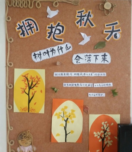 深秋开始,又是孩子们认识大自然的好时机,为了让孩子们感受到秋天的气息,我们本次的主题墙是以《拥抱秋天》为主题,为了培养幼儿观察大自然的奥秘,并让孩子们和爸爸妈妈一起到大自然中观察落叶树和常绿树的秘密,并收集漂亮的落叶,观察树叶的形状并进行绘画来装饰主题墙通过本次主题我们共分为三个板块。