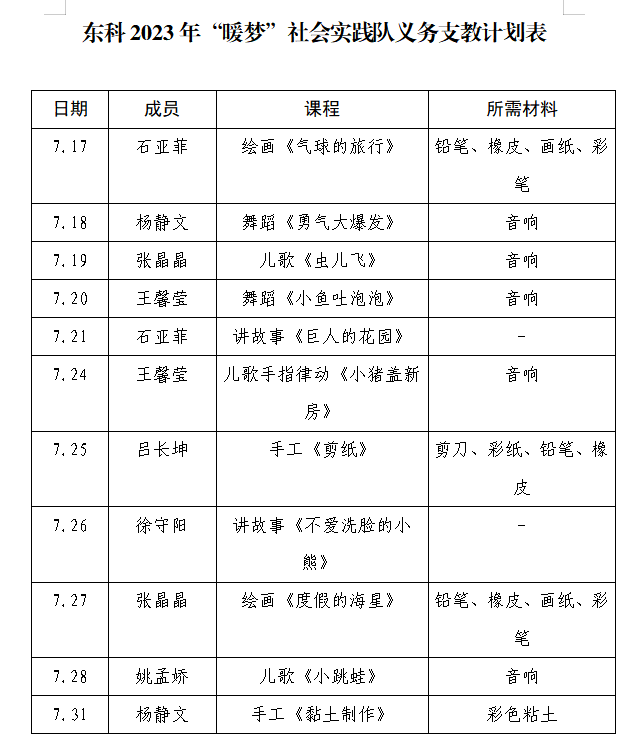 诸多课程的开设,离不开支教团队的充分准备。为了能给孩子们带来丰富充实的暑期体验,暖梦志愿服务队提前制定计划,力求素质教育与知识教育并行,德育和美育并重,希望用丰富的内容、多样的形式给孩子们带来一个五彩美好的假期。