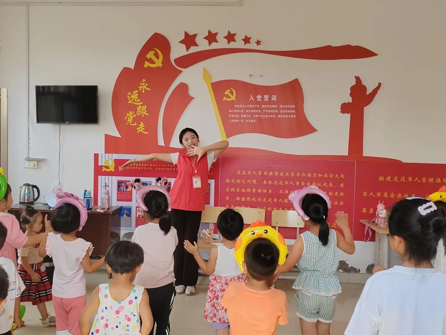 在音乐课堂上,志愿者老师带着孩子们歌唱欢快的乐曲,跳起优美的舞蹈,孩子们认真学唱,积极表演,也对音乐产生了浓厚的兴趣;