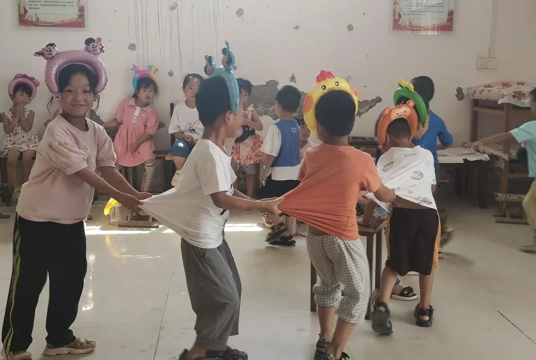 课间大家又玩起“老鹰捉小鸡”的游戏,志愿者老师为孩子们准备的卡通发夹也深受大家喜爱,一阵一阵欢声笑语在教室里回荡……