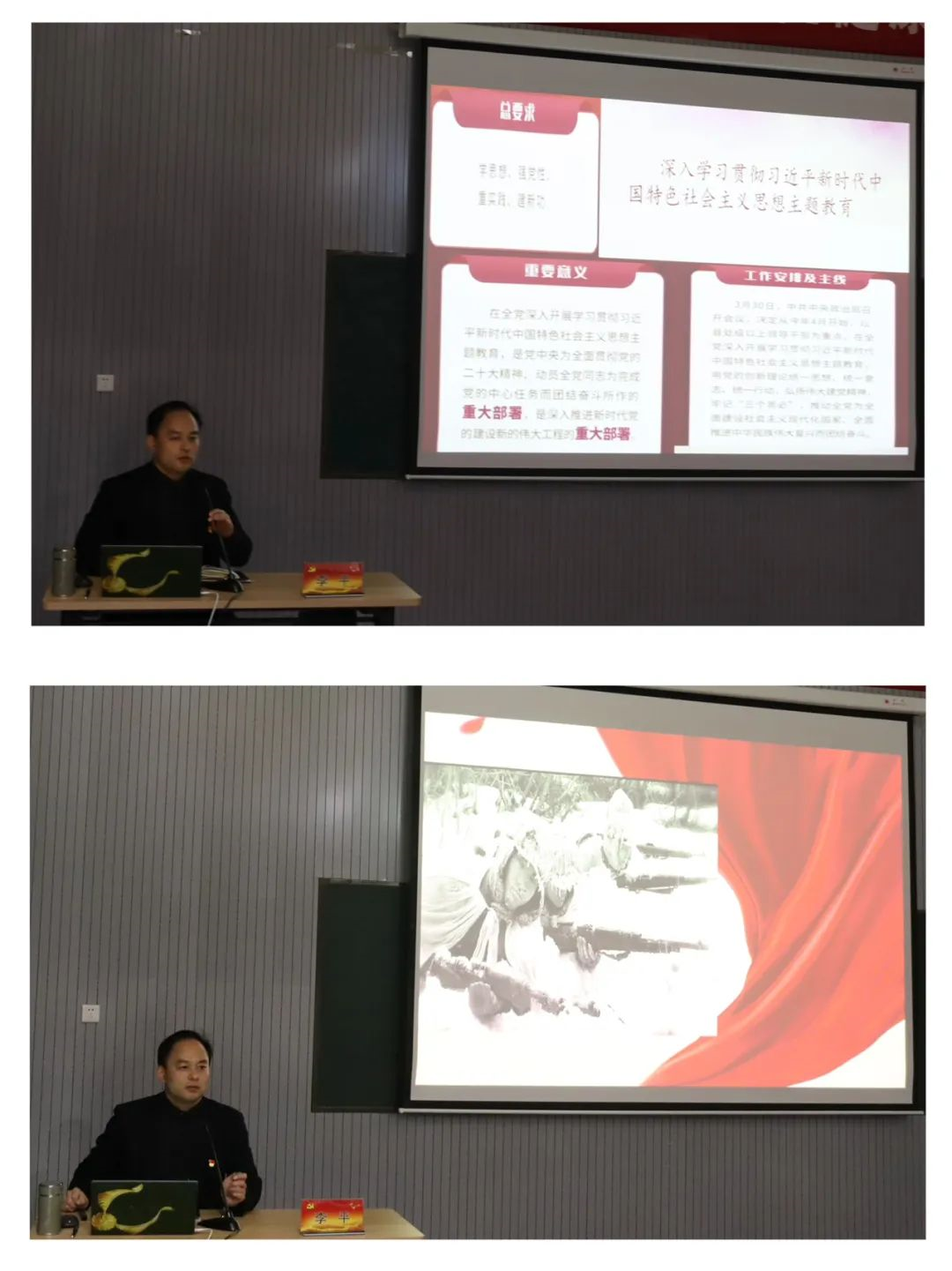 为传承红色基因,延续红色使命,加强对青年学生的思想引导和教育管理,2023年12月7日晚,必威BETWAY西汉姆联党支部书记李平作主题教育专题党课。他强调,同学们作为新时代青年要更加全面地认识到应担起的重任、应发扬的精神、应培养的品质。先辈们流血牺牲无私奉献的精神如同永恒照耀前途的指明灯,将引领着同学们奋力奔跑于新的征途。李平以“冰雕连”的故事开场,从朝鲜战争的历史背景、抗美援朝出兵的决策过程、战争胜利的意义三个方面,带领现场师生一起回顾了那段艰难岁月,展现了在中国共产党的坚强领导下,中国人民志愿军英勇顽强,最终夺取伟大胜利的艰辛历程。