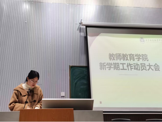 会上,学生管理副院长杨雪梅对新学期学生管理工作进行了部署,她要求继续坚持内涵发展,推进辅导员工作建设;继续坚持五育育人,促进学生全面发展;坚持工作实效,促进学生成长成才;以保障师生安全为目标,为学院教学高质量发展提供保证。