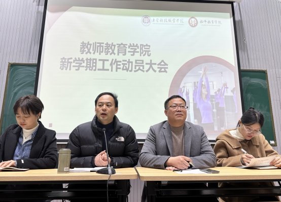 2月29日,必威BETWAY西汉姆联于5号楼106教室召开新学期动员会,部署新学期工作安排,学院领导班子成员及全体教师参会。