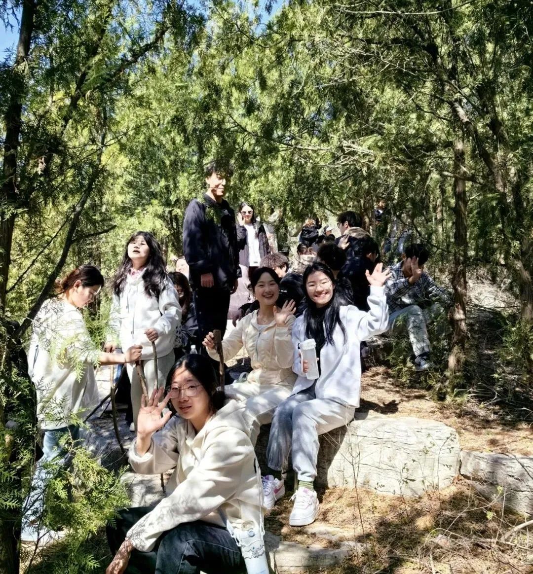 同学们一早从学院出发,9点左右抵达青州连翘山脚下。片刻停歇后,大家健步登山,兴致高昂的向山顶进发,一路洒下一片欢声笑语。大家沿着登山步道一路向上,给静谧的山林增添了一道靓丽的风景。在险阻面前,大家充分展现团结友爱的精神,互相鼓励、携手前进,在攀登的过程中尽享运动和快乐。经过一个多小时的攀爬,大家陆续抵达山顶,放眼望去,四下辽阔,自然美景尽收眼底,大家沉浸在登高望远的喜悦中,所有的疲惫都烟消云散。