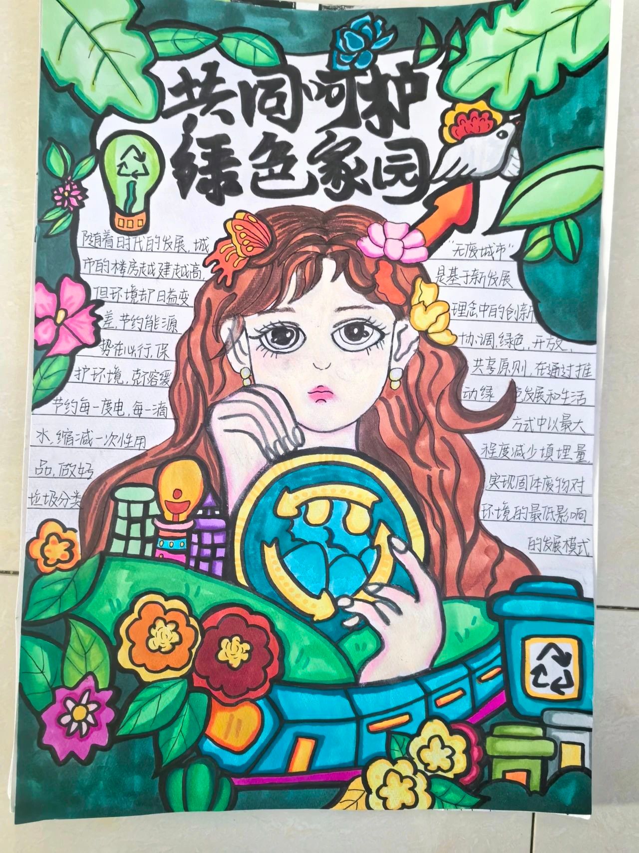 在“共创无废之城”手抄报活动中,同学们纷纷拿起画笔,将自己对无废城市的向往和期待融入作品中。每一幅作品都充满了创意和想象力,展现出了同学们对生态保护的深刻理解和坚定信念。