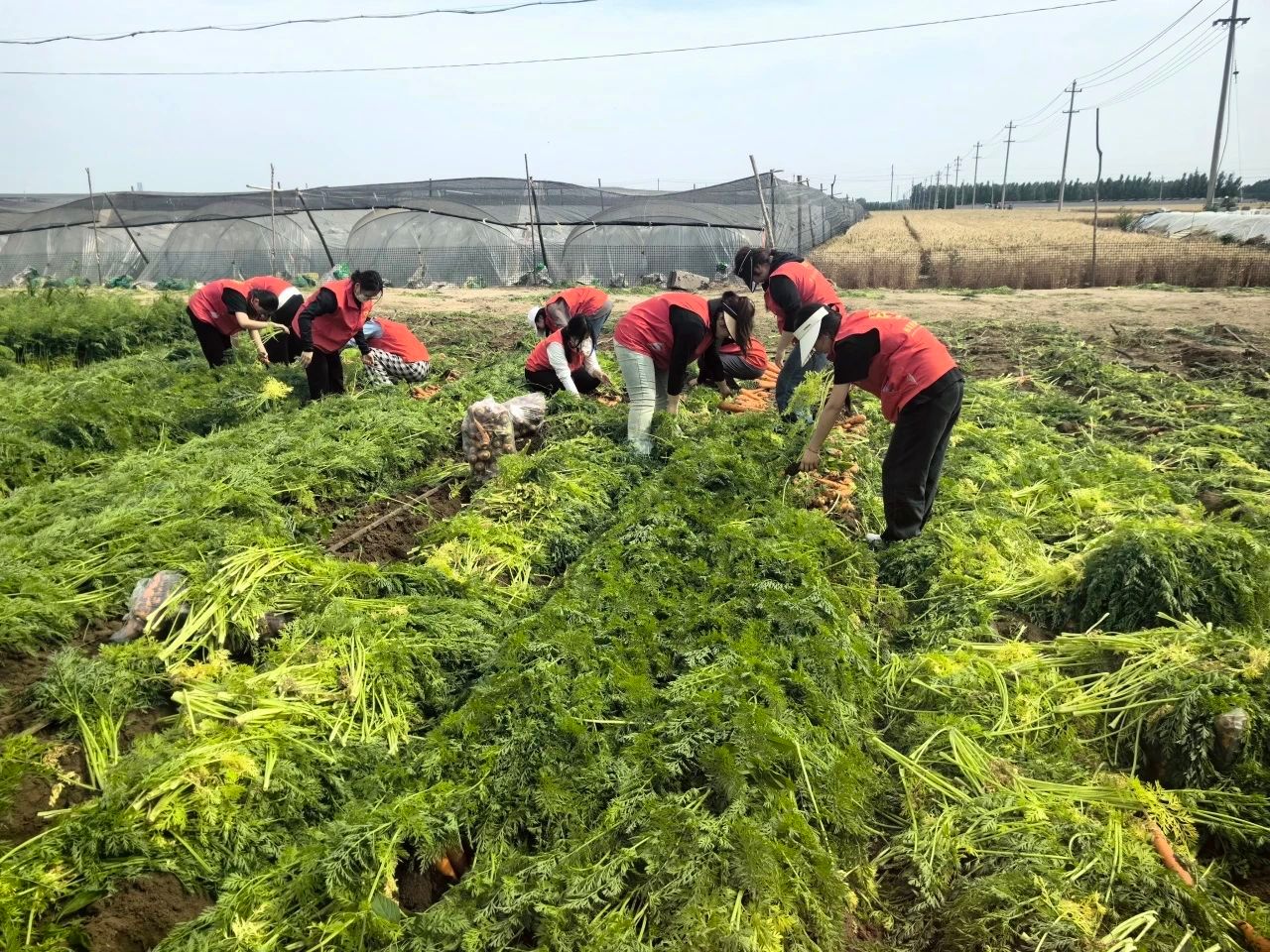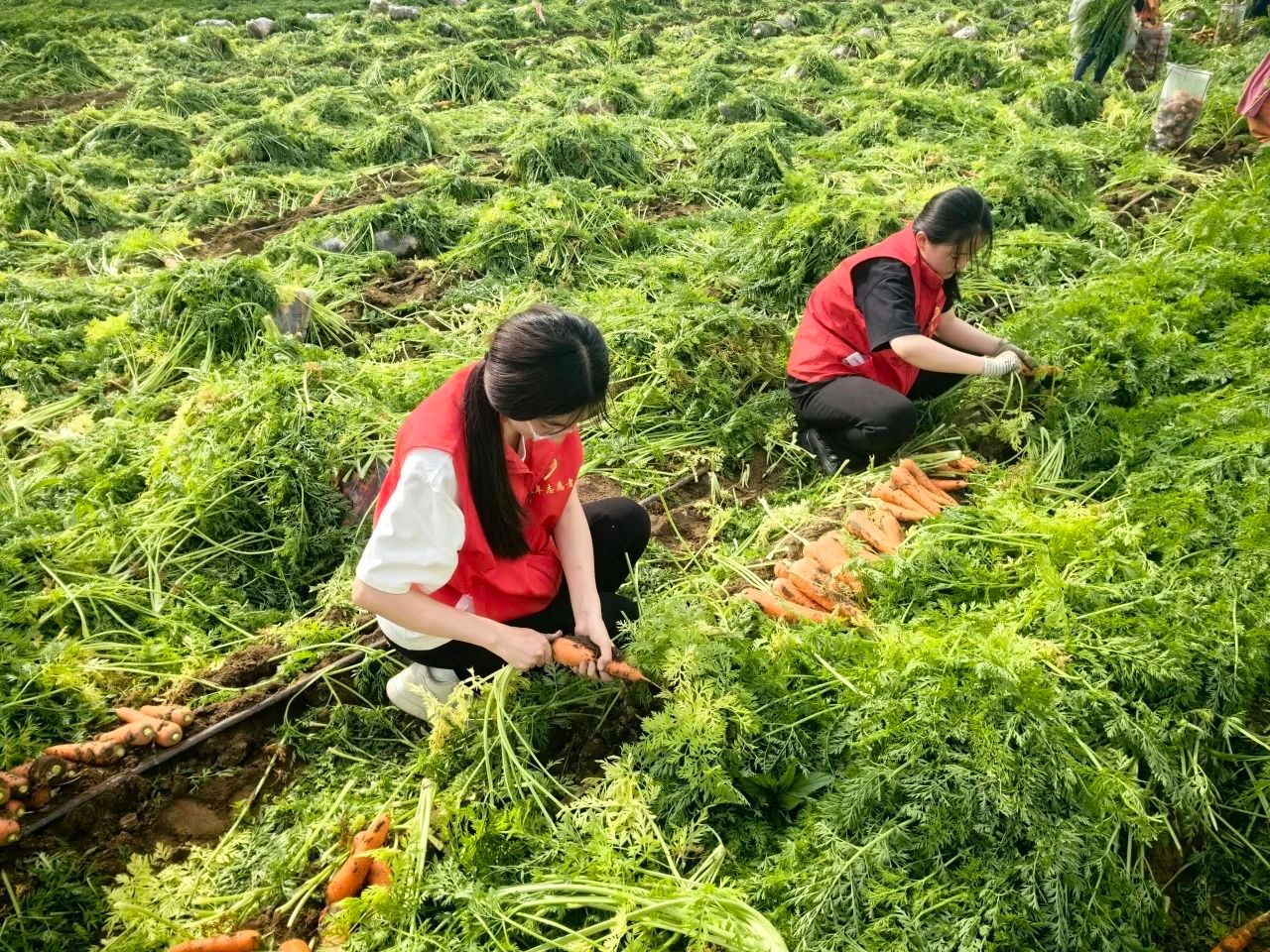 志愿者们迅速融入其中,他们与农民伯伯们并肩作战,共同将一颗颗鲜嫩的胡萝卜从泥土中拔出。尽管阳光炙热,但大家的热情却丝毫未减。他们默契地配合着,有的负责拔胡萝卜,有的负责装袋。整个过程中,大家忙得不亦乐乎,田间地头充满了欢声笑语。在与农民伯伯们的交流中,志愿者们深刻感受到了他们的淳朴和热情。农民伯伯们分享了自己的种植经验和生活趣事,让志愿者们对这片土地和这片土地上的人们有了更加深厚的感情。