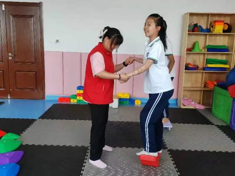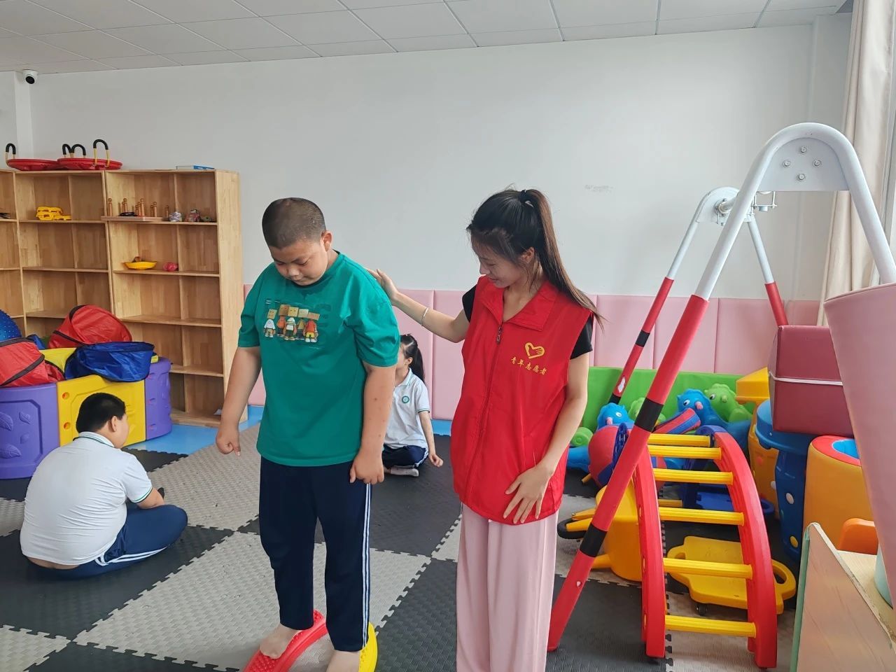 对于启慧学校的孩子们来说,康复训练是他们日常生活中的重要部分。志愿者们深知这一点,他们积极参与到孩子们的康复训练中来,用自己的耐心和爱心,陪伴在孩子们身边,为他们提供心理上的支持和鼓励,帮助他们克服康复训练中的困难和挑战。