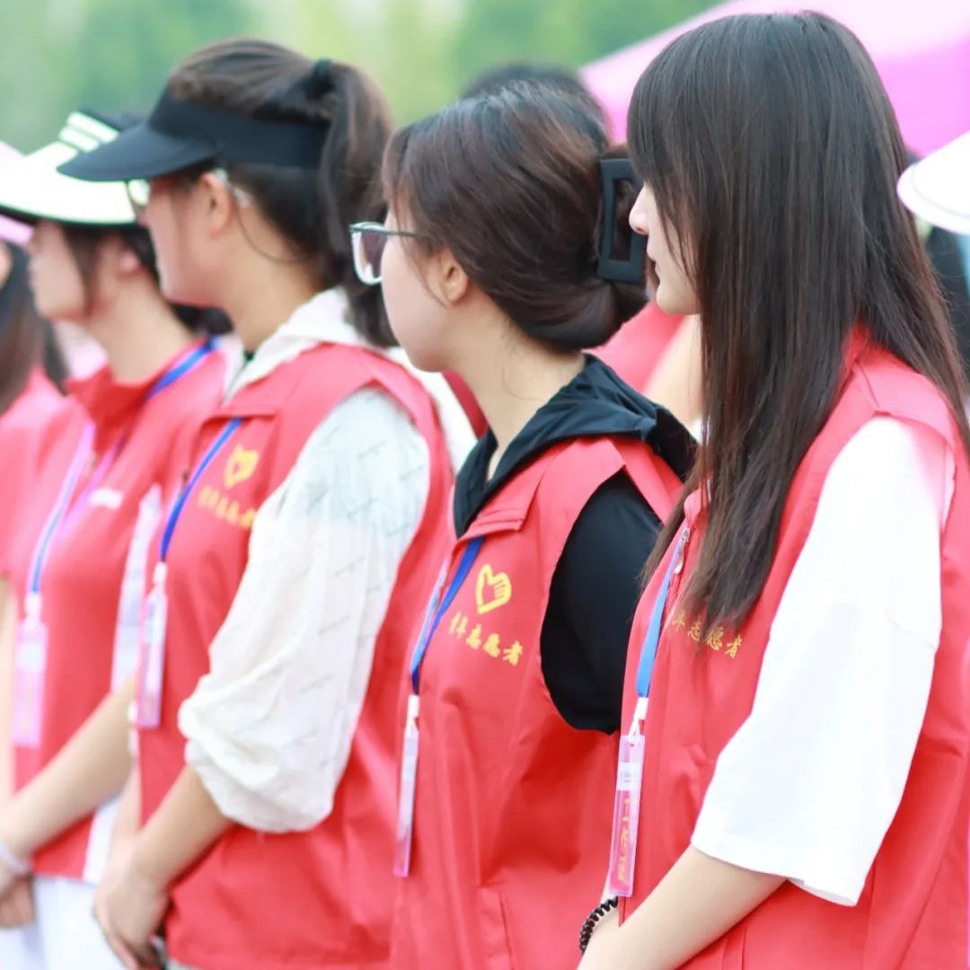 志愿者们身穿红色马甲