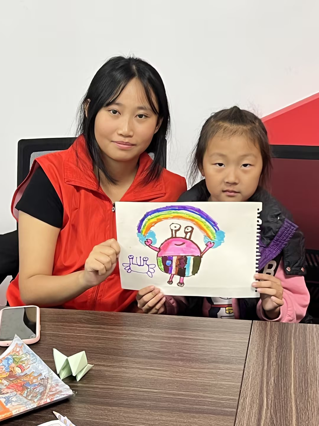 除课业辅导之外,志愿者与孩子们共同完成了美术作品《小螃蟹》,这样的艺术活动为孩子们提供了一个释放压力、发挥想象力和创造力的平台。通过绘画《小螃蟹》,孩子们不仅学会了如何运用色彩、线条和形状来表达自己的想象,还学会了团队合作和相互协助的重要性。此次周六星光学堂中,不仅让参与者们对与教育工作有了更深刻的认识,更激发了志愿者们以后对于教育工作的开展与普及的决心和行动。