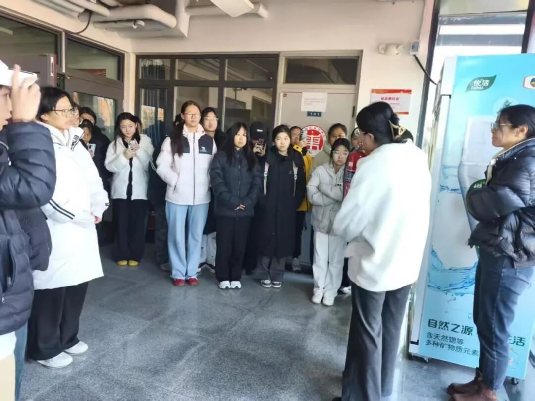疏散环节后,演练进入实战指导阶段。学院副院长杨雪梅深入宿舍区,现场强调宿舍安全规范与实操要点;与此同时,崔越涯老师在教学楼前为同学们详细讲解了灭火器的原理、适用场景,并重点演示了“提、拔、握、压”的操作要领。在学生代表实操环节,老师们逐一指导纠正,确保大家熟练掌握灭火技巧,成效显著。