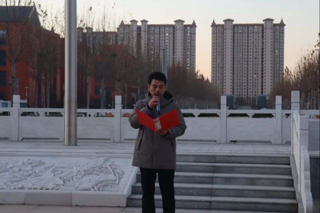 国歌声中,全体师生肃立注目,五星红旗冉冉升起,现场庄严肃穆。随后,牛泮龙处长讲话,他强调宪法是国家根本法,既保障公民权利,也规范行为底线,青年学生要主动学宪、懂宪,将知法守法融入日常,厚植法治观念。