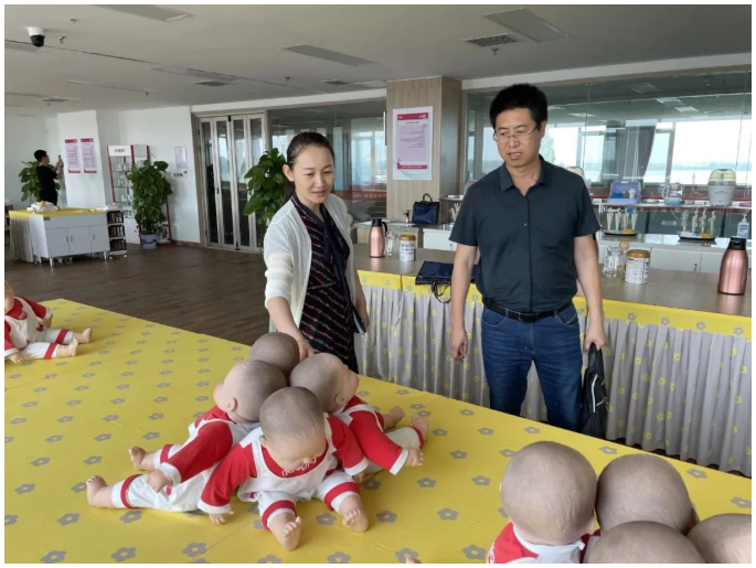 随后,在高经理的带领下参观了济南阳光大姐家政服务实训基地,每到一处,高经理都详细介绍了建设标准、装修标准及功能设置。她介绍到,全国家政服务标准化示范基地作为新旧动能转换的重要载体,示范区的功能设置、标准化、智能化都有很高的行业引领,是紧紧围绕习总书记提出的“创新、协调、绿色、开放、共享”的发展理念,形成了阳光大姐新时代的发展方式,实现了阳光大姐从行政推动到市场主体再到高质量发展的新高度。